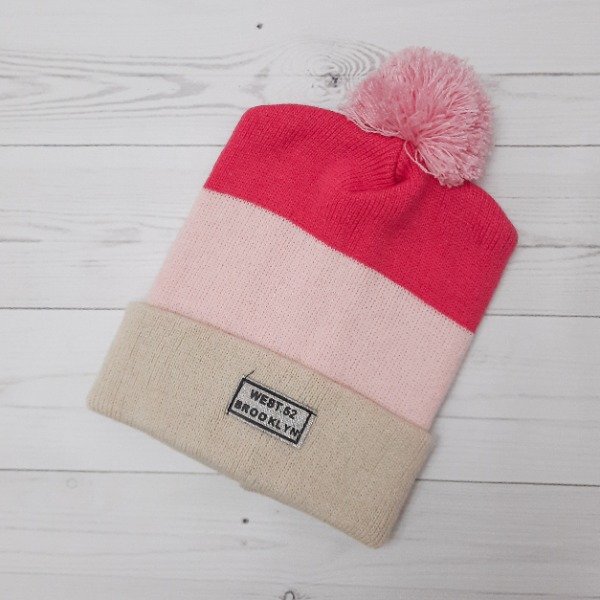 Gorro Pompón Chicle/Rosa/Beige