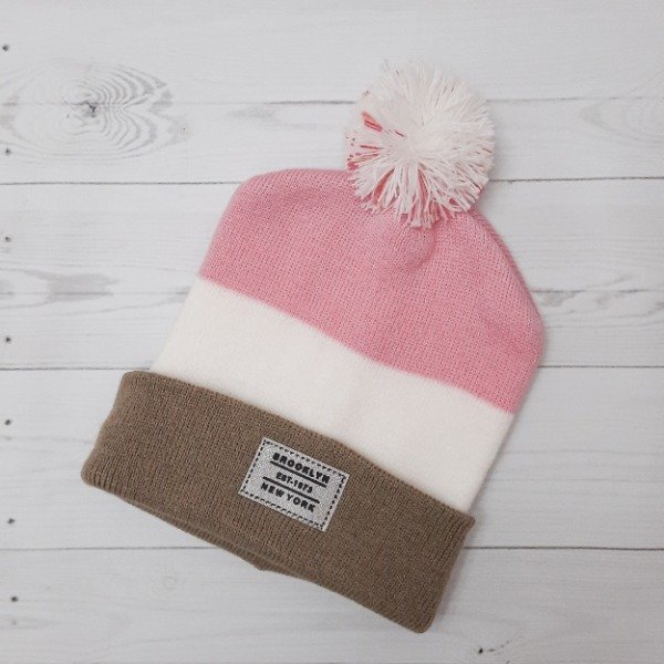Gorro Pompón Rosa/Blanco/Tostado