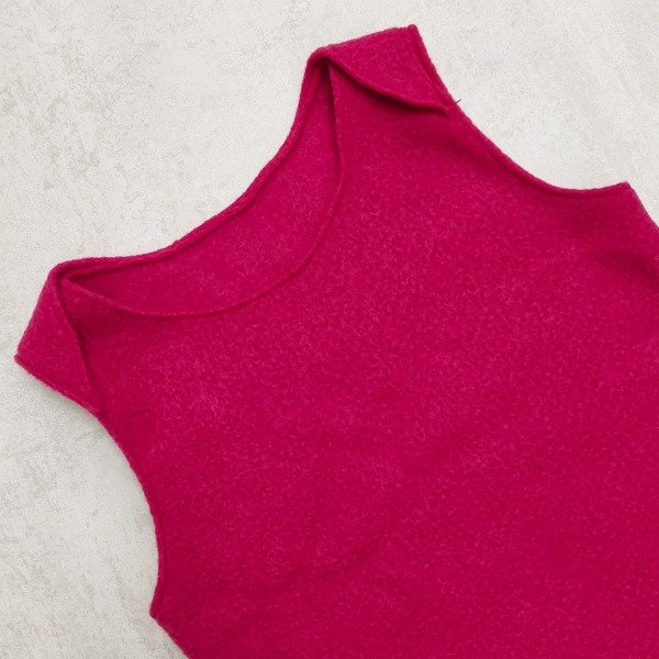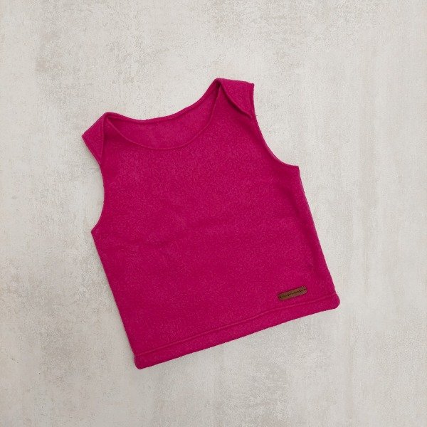 El chaleco es de polar. Es muy suave y abrigado. Tiene cuello americano para facilitar el paso de la cabeza del bebé.