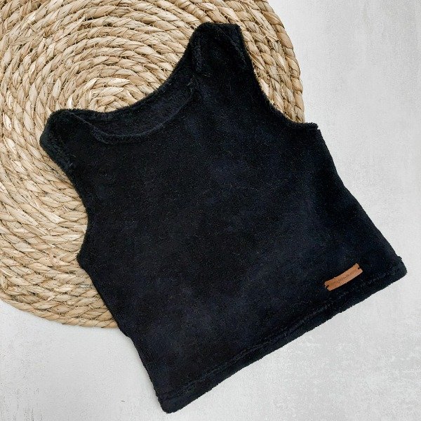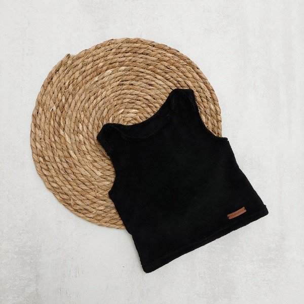 El chaleco es de polar soft bifaz (peludito por dentro y por fuera). Es muy suave y abrigado. Tiene cuello americano para facilitar el paso de la cabeza del bebé.