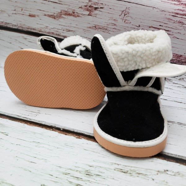 Pantu botas para caminantes, son de gamuza por fuera y corderito por dentro. Detalle de orejitas. Suela de goma eva gruesa.